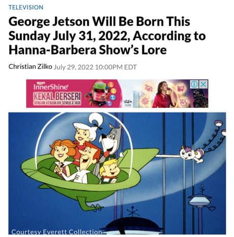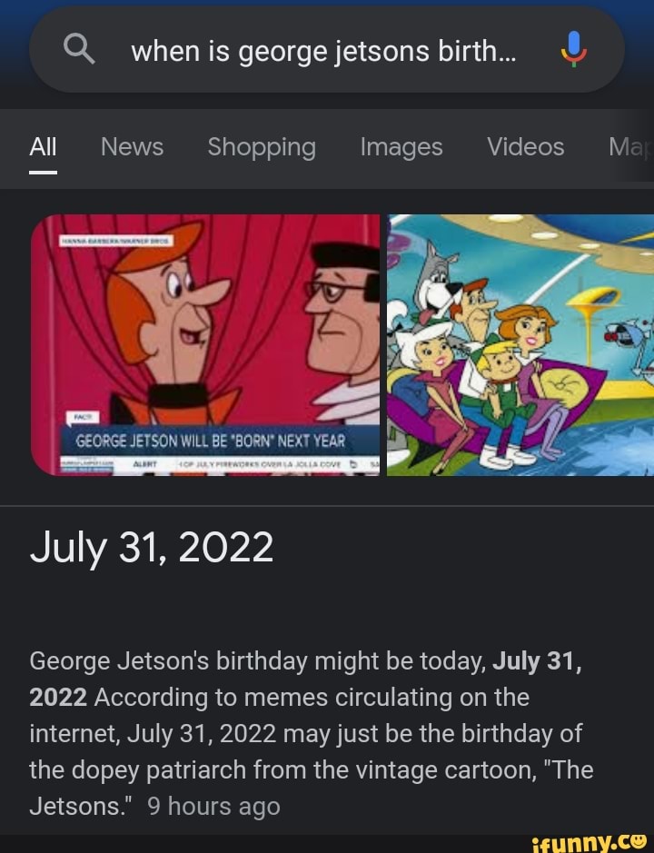 Fine lets think too damn hard about whether George Jetson will actually be born tomorrow A circulating meme suggests that George Jetson will be born on July 31 2022 but. The memes typically include jokes about how. Welcome to the world George Jetson.